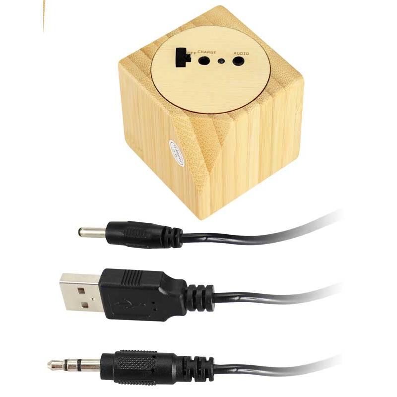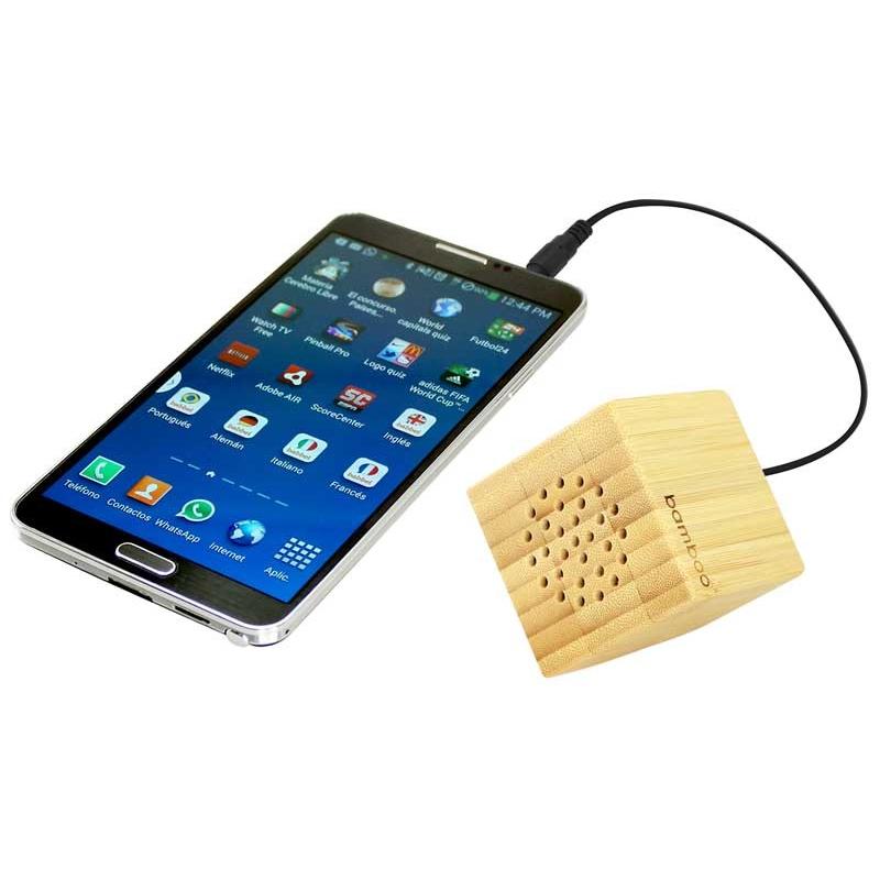 Parlante 100% de madera de Bamboo, con conector USB y Jack 3.5mm.